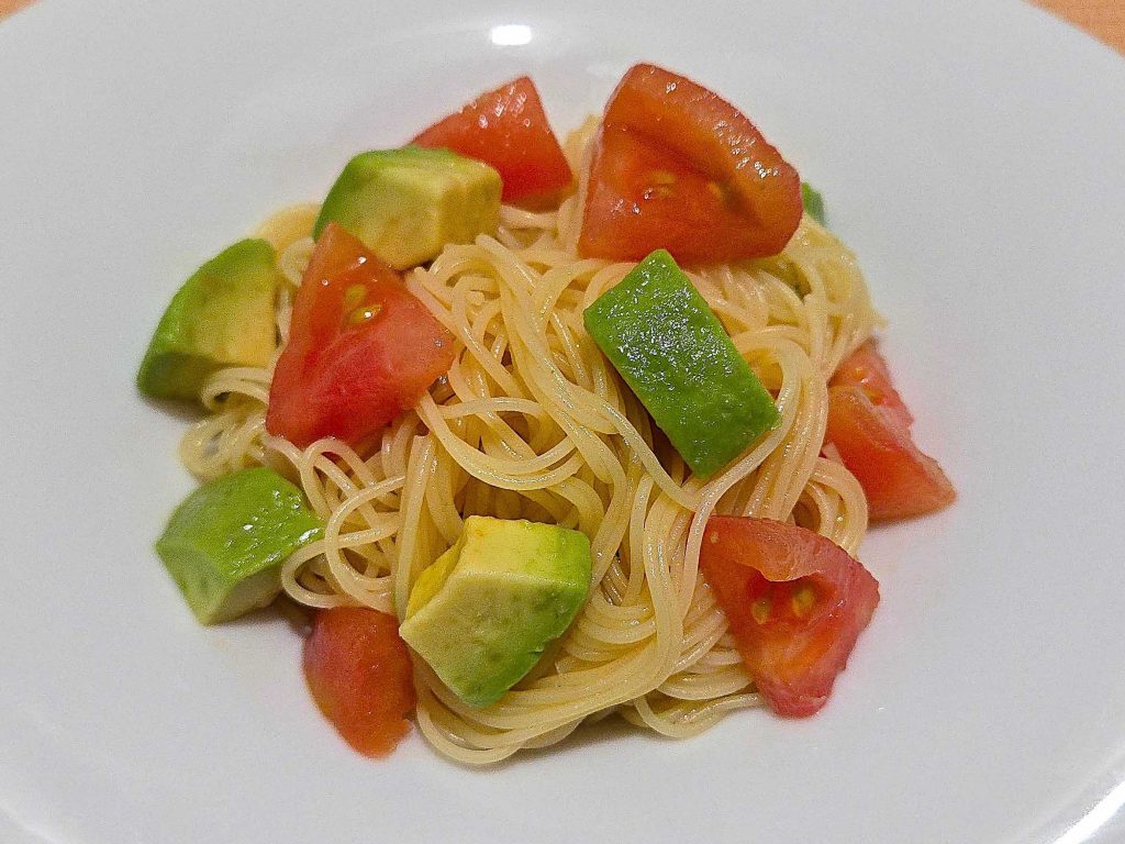 1.トマトは湯むきし、ひと口大の乱切りにする。2.アボカドは皮と種を除いて1.5cm角に切り、レモン汁をかけて和えておく。3.ボウルにA・(1)を合わせ、冷蔵庫で冷やしておく。4.たっぷりの湯に塩(湯の量の1%)を加え、袋の表示時間より30秒長くカッペリーニをゆでる。ゆで上がったら流水でザッと洗い、氷水で冷やす。5.(4)の水気をペーパータオルでしっかり拭き取り、(3)のソースに(2)のアボカドと一緒に加えて和える。