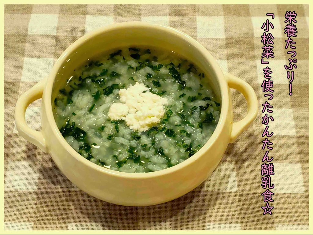 まだまだ食材を噛み切ることは難しいので、小松菜の茎は与えず、葉のみにしましょう。