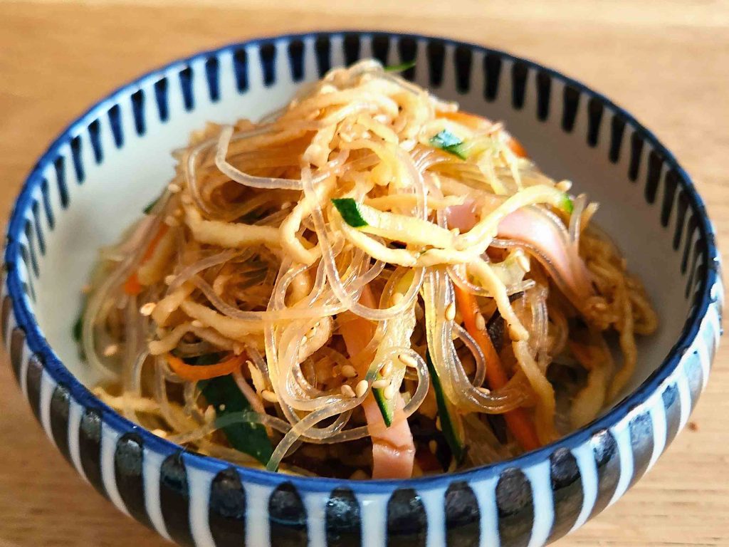 4.ボウルにAを合わせ、水気をしっかりとしぼった切り干し大根・春雨・(2)の順に和える。