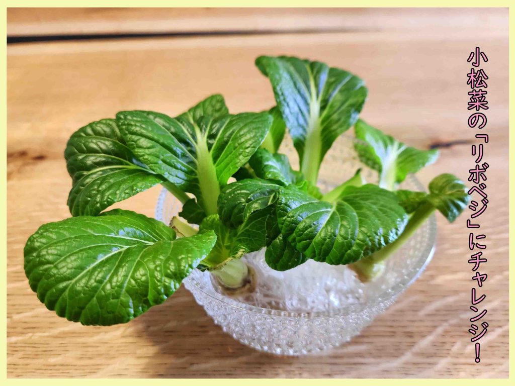 小松菜のリボベジは、水耕栽培でできるので初心者の方でも簡単に始められます。