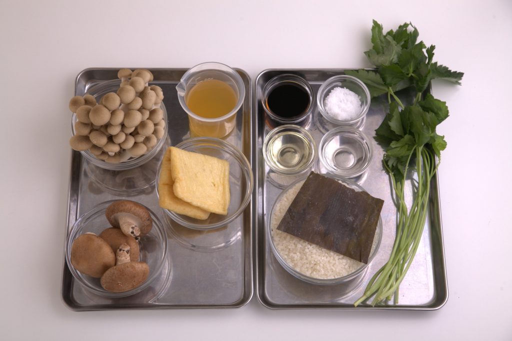 うま味たっぷりのきのこと爽やかな風味の三つ葉を合わせました。