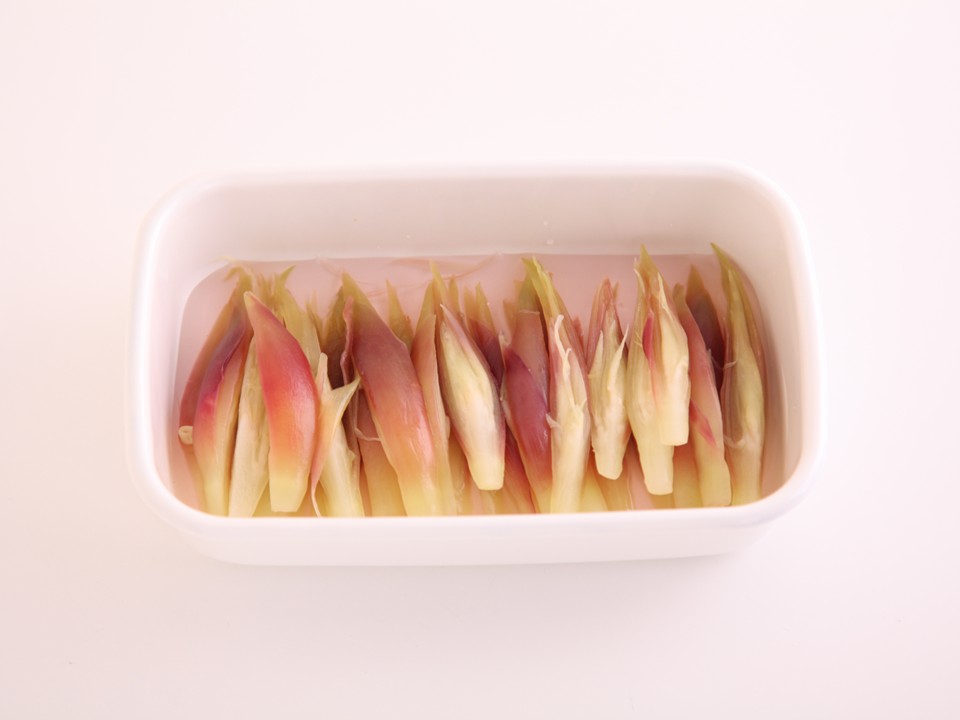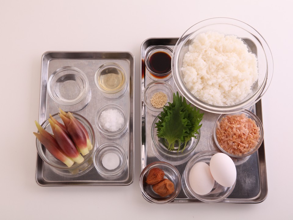 甘酢に浸けた鮮やかなみょうがを刻み、チャーハンに加えました。梅干しとかつお節が味にアクセントをプラスし、コクと酸味のバランスがよく、徐々に夏に近づいている今の時期にぴったりです。